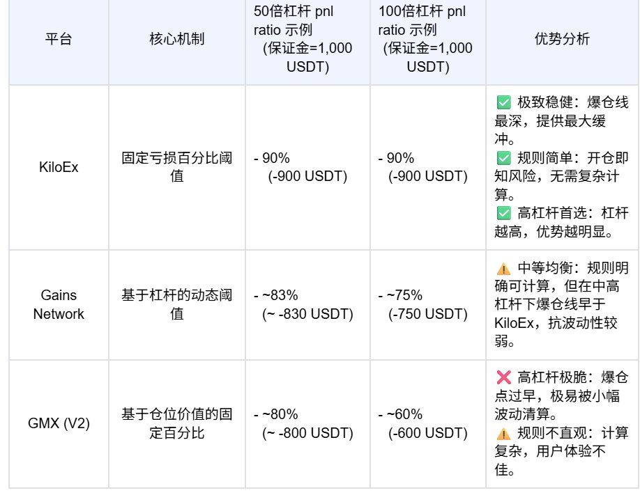 KiloEx 的爆仓线最深,能提供最大缓冲,仓位存活率更高。