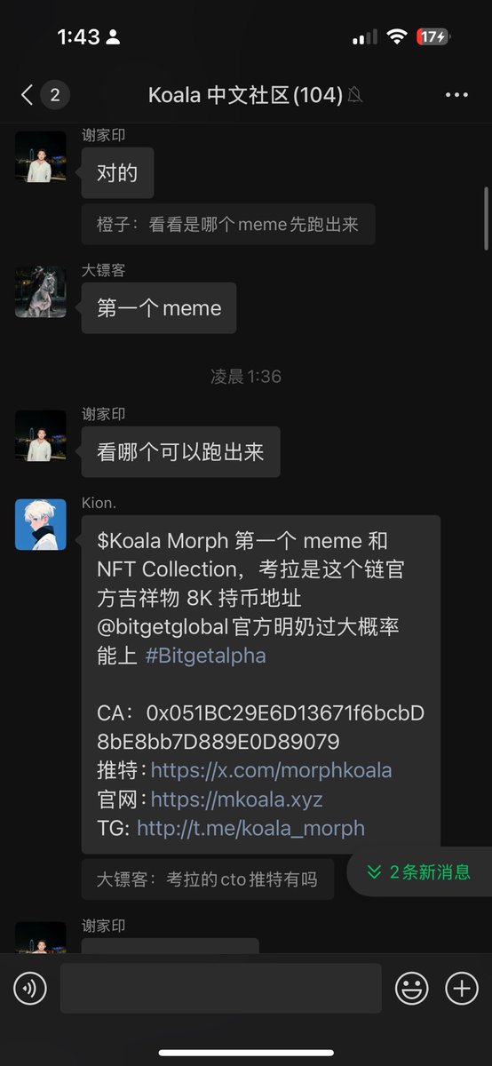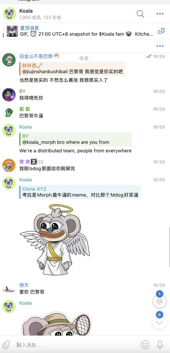 抛开链啊各种因素不讲, $Koala 社区氛围真的是很棒的,无论怎样都一直在建设,等Morph再起飞, $Koala 就应该是meme龙头