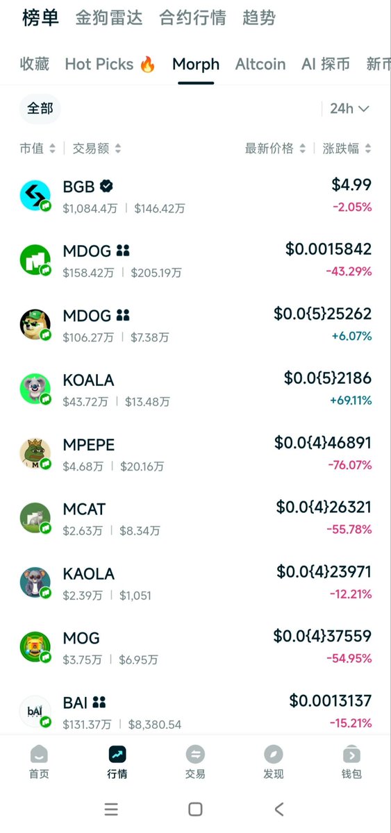 看来 #Morph 公链要出来金狗了, #Bitget 钱包里面的哪个会成为龙一呢,要不每个都先买点 ,好像大家聊 $KOALA 的比较多。 每天蹲着官网 @MorphLayer 看看有没有好消息,大概率会出来个几个金狗。 #Morph @Bantr_fun #KOALA
