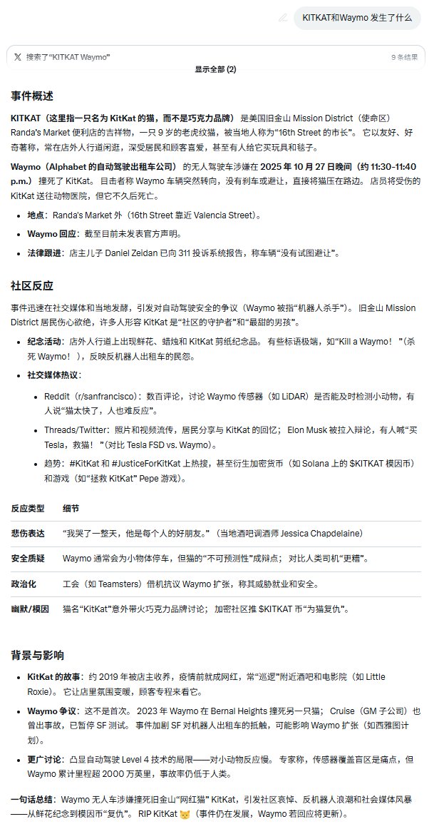 一辆 Waymo 自动驾驶车在旧金山撞死了一只名叫 $KitKat 的猫。