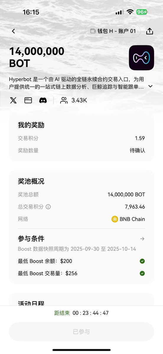 别忘记去报名参与下 Hyperbot 的空投,1400万 $BOT 奖池,人均应该也有几十U的吧。