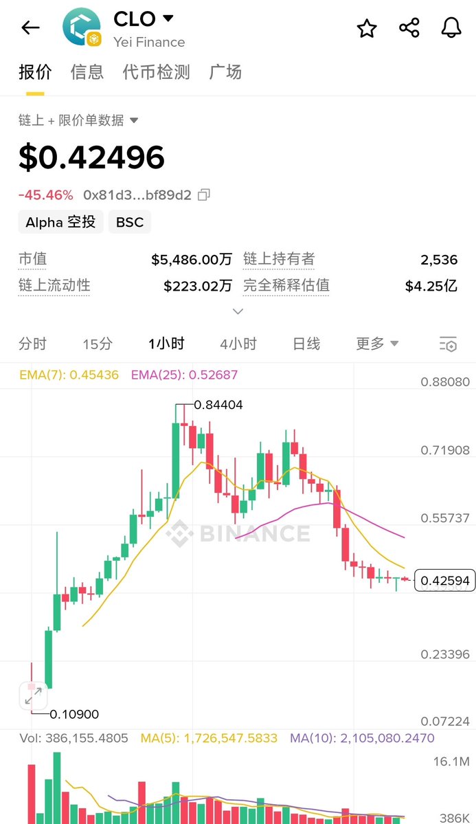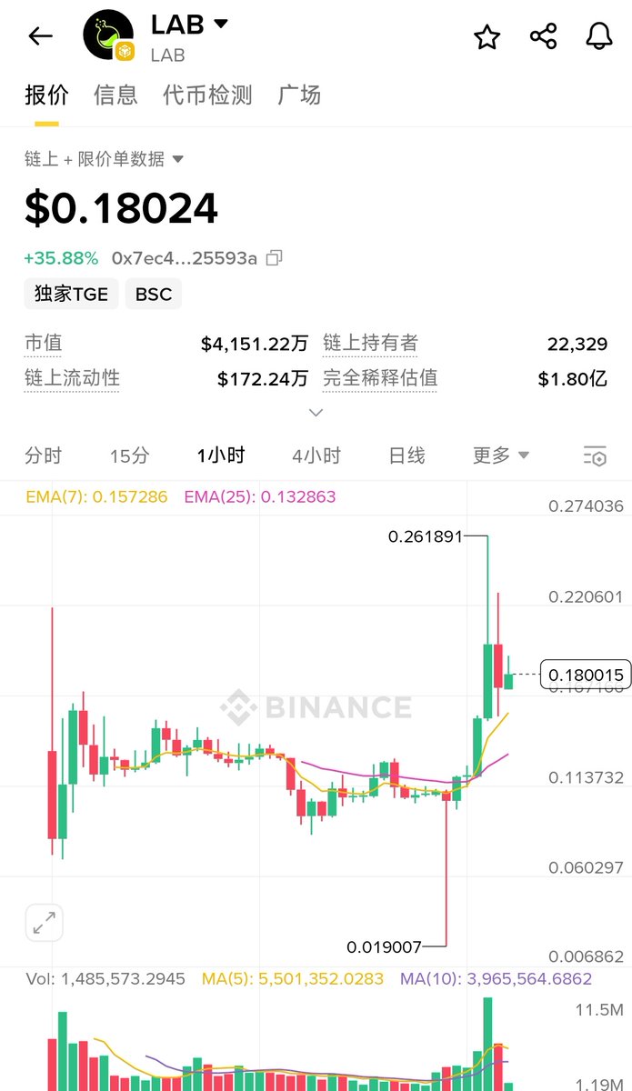 同样是昨天上线 #币安Alpha 的项目, $LAB 与 $CLO 的差距咋就这么大,而且 #LAB 还搞了预售呢!说到预售也是有苦说不出,1250的价格买了3BNB参与,到开盘时 #BNB 跌到了1180/枚,血亏210美金💸