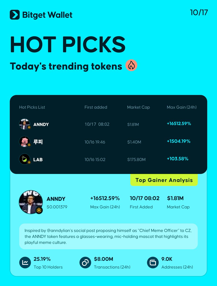 🚀 #KuCoin 24 小时涨幅前 5 名(2025 年 10 月 17 日)