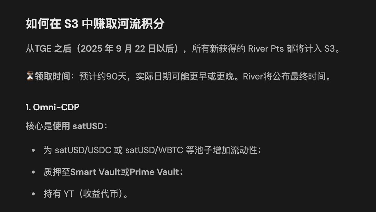 TGE( 9 月 22 日)后所有新 River Pts 都算到 S3 赛季,这个赛季大概持续 3 个月