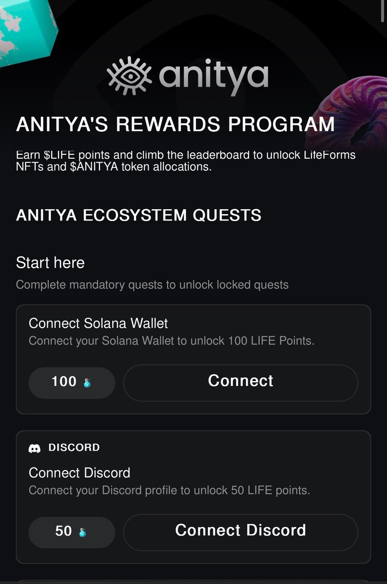 200 美元赠品(72 小时) Anitya 的新奖励计划可让您赚取 $LIFE 积分、攀登排行榜并解锁 LifeForms NFT + $ANITYA 分配。 — 关注@LifeFormsNFT@anitya_space - 加入 还记得放下你的截图,