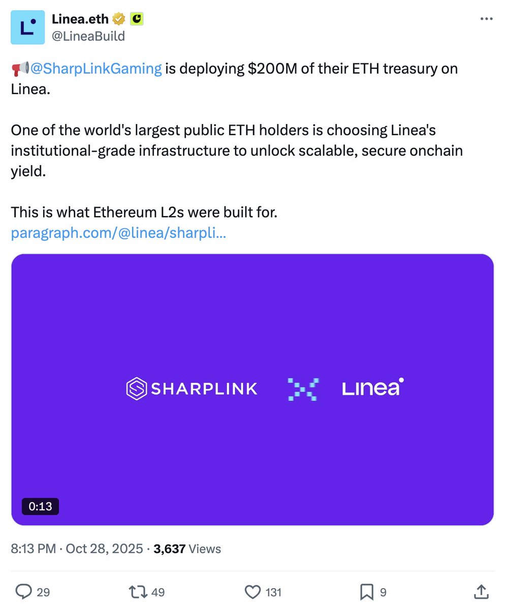 如果生态持续扩展 + L2 资金回流,Linea 有望成为“机构首选 zkLayer2”。