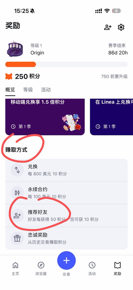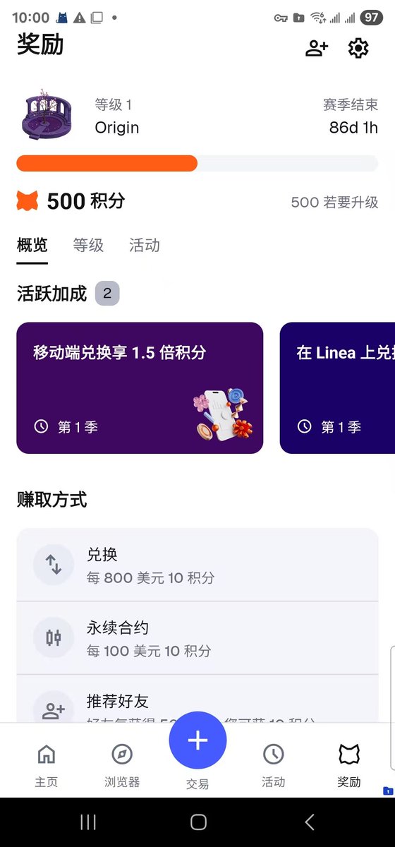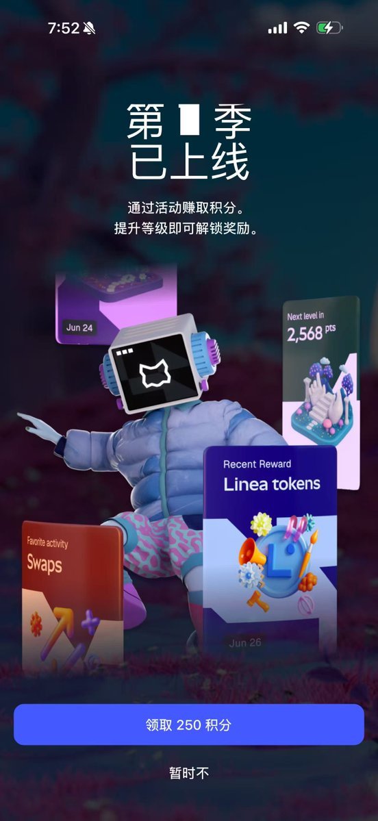 MetaMask 积分奖励计划首季活动已于昨晚开始,第一季还有 86 天结束,通过在小狐狸钱包中兑换、永续合约、邀请好友等方式赚取积分,积分可在季末时兑换领取 $LINEA 代币等多种奖励。