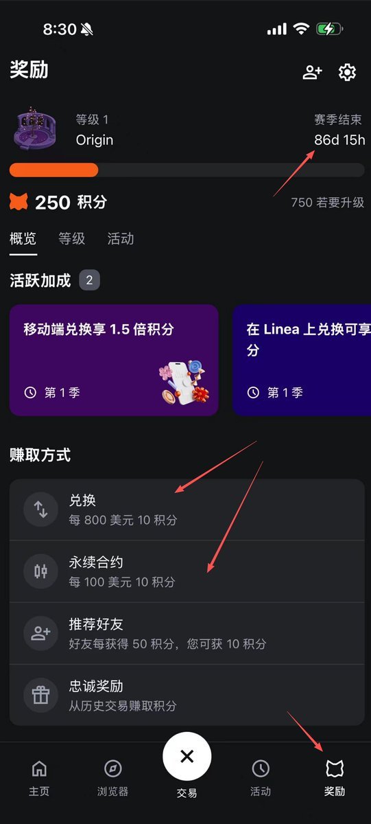 ※ Linea 网络加成:在 Linea 上兑换可享受 2 倍积分加成