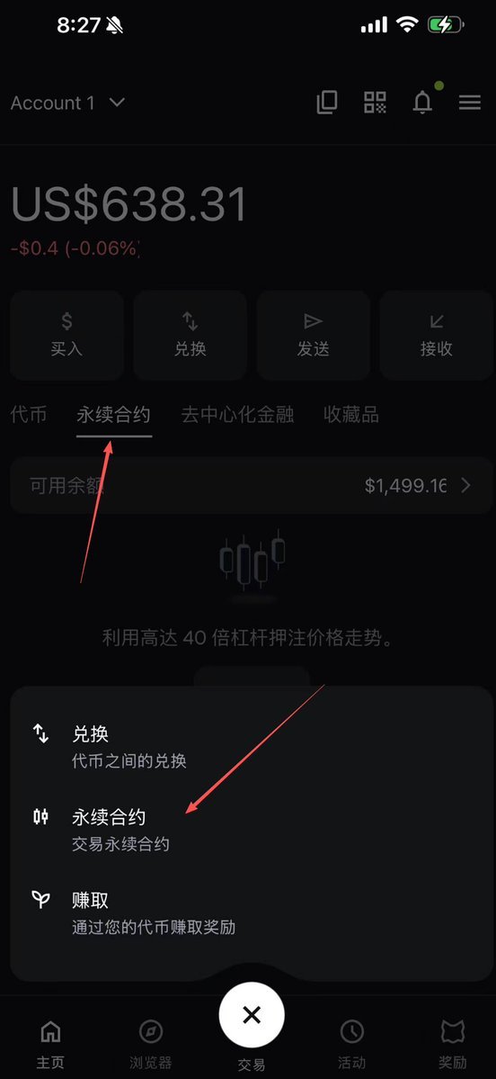 5、充值资金进行 SWAP、永续合约交易赚取积分。