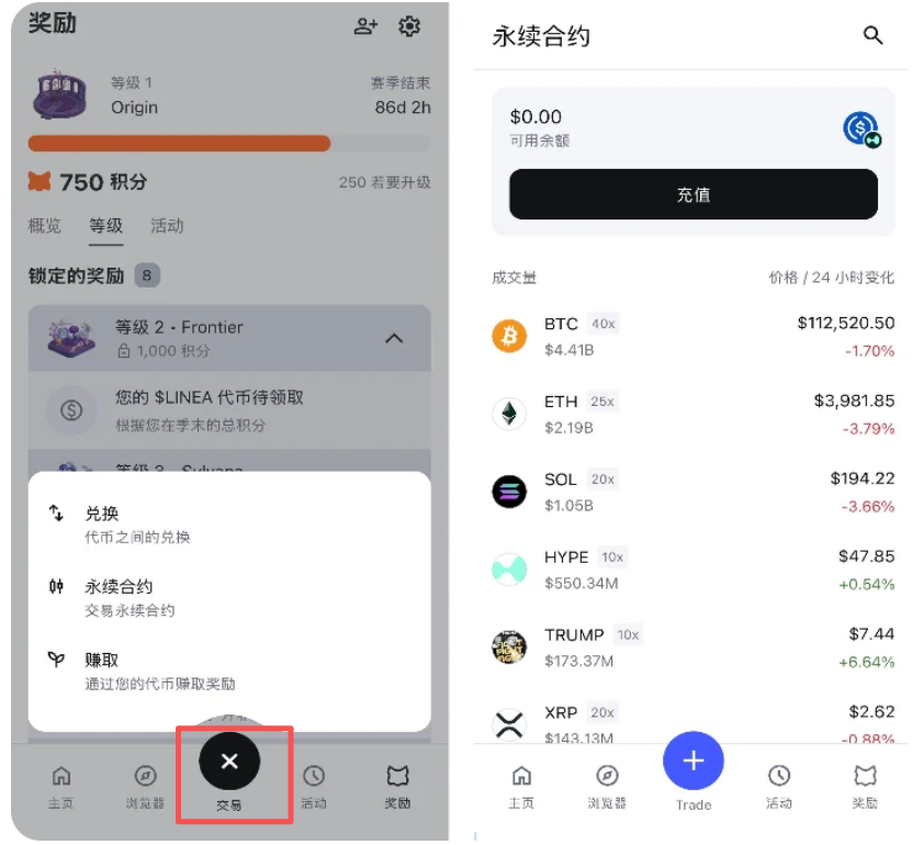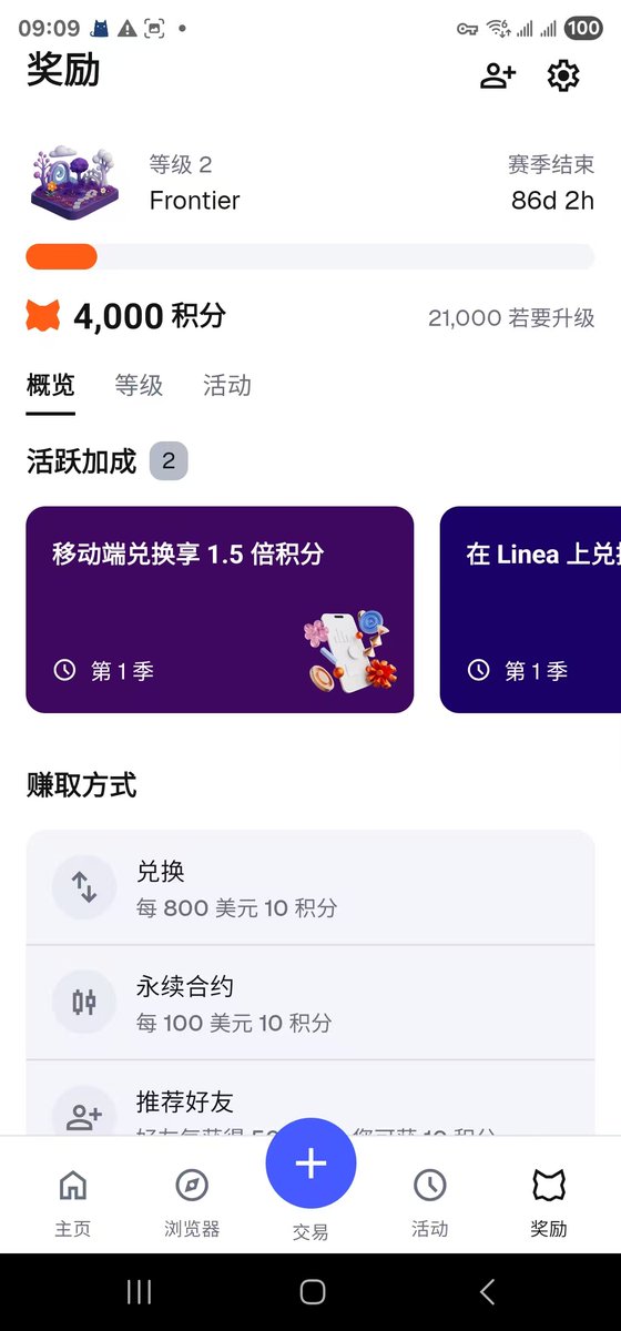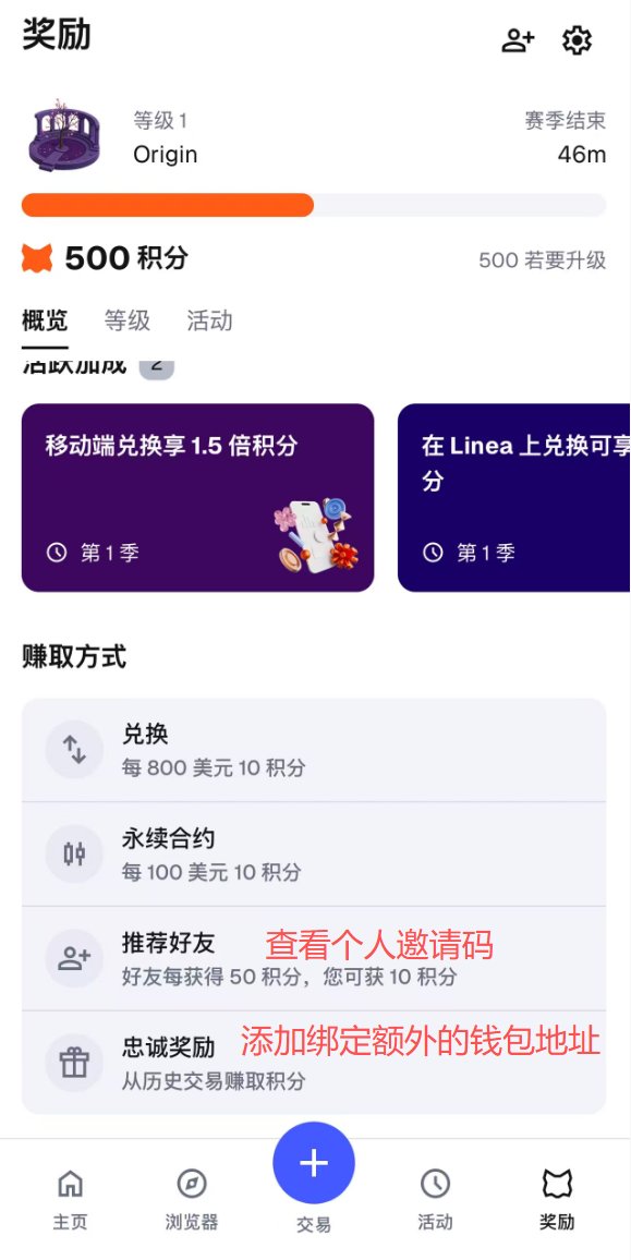 - 移动端交易有 50% 加成, Linea链交易有 100% 加成。