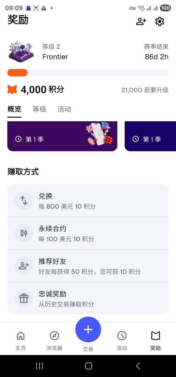 奖励:除了前置等级奖励,可以获得 MetaMask 金属卡(一年,赛季结束领取)