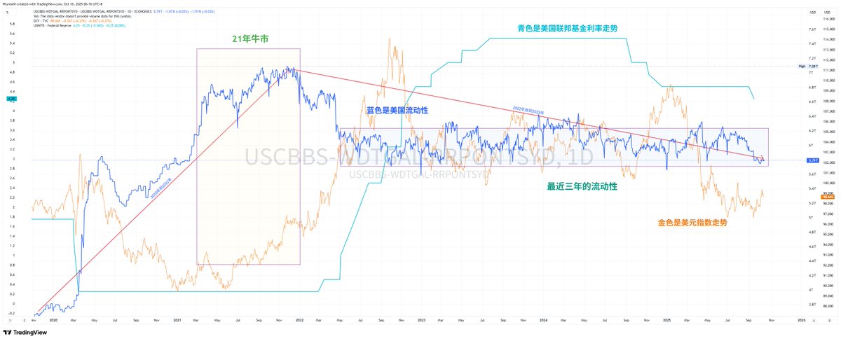 在八月推文的时候我就说过,现在并不是典型牛市,真正的牛市应该是流动性泛滥的时候,但现在的流动性,不用我说,都能知道现在的流动性不咋样,从流动性的数据中能明显的看到,目前2025年和2022年没有什么本质区别,都是较低的水平。