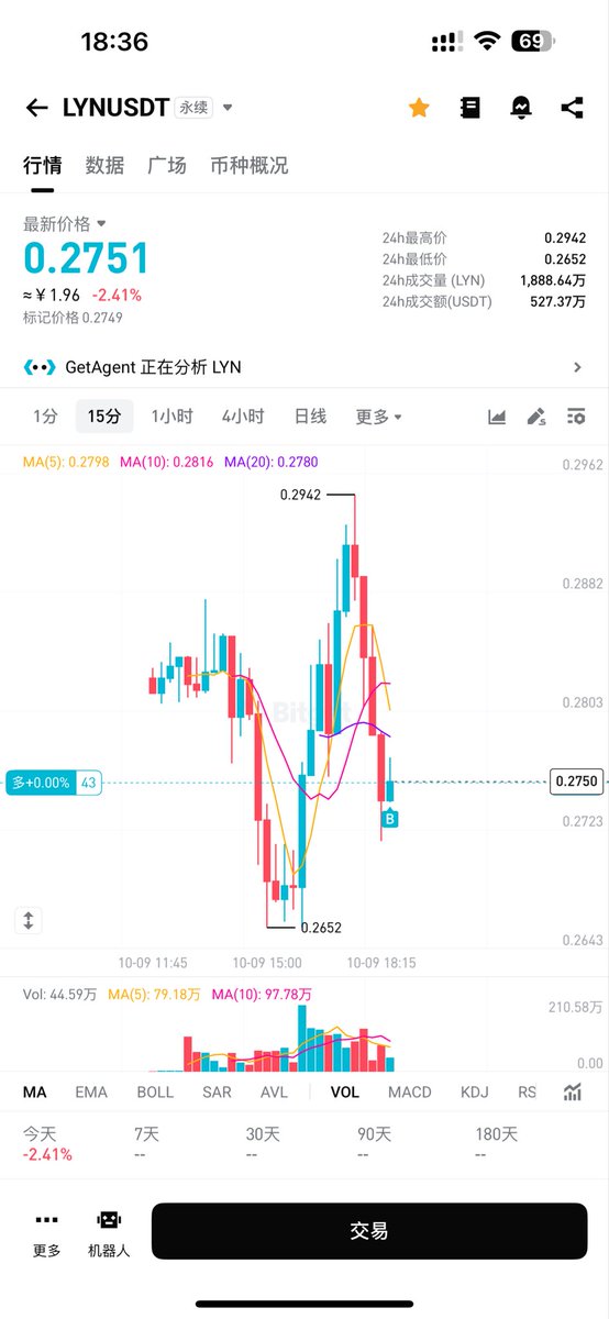 多进去了 #LYN 理由 币安新币中少有背景强悍,新赛道龙头,低估值项目 项目本身是做web3原生Ai视频协议的,拿到了 Mysten Labs等顶级机构投资和BNB Chain MVB9孵化,顾问阵容包含图灵奖得主 Yann LeCun和前Meta团队科学家 平台上面创作视频可以获取代币奖励 $LYN 大家可以去官网体验,个人感觉视频效果展示还挺不错 前段时间热度很高,在kaito上获得了大量关注,推特上也是被提及最多的web3 ai视频制作项目 团队在第四季度要进行大更新 重新设计网站,使用 @Kling_ai 构建实时会说话的头像,最重要的在明年第一二季度实现全面的智能更新 1,由ai驱动实现电影级的视觉体验,并且能够实时的实现场景生成 2,世界建模和仿真,使代理人能够看见,学习和响应 3,一个能理解运动、声音、空间的模型 可以看见团队比较重视技术和产品的开发,所以这个项目可以加入长期观察列表 同时,近期k线可以看到密集成交区在0.28到0.29附近,并且基本上已经到了投资者成本价,是个非常合适的进场点,刚跌到0.269我开了个多单,可看下图 综合信息和数据来看已经差不多到底,多单已进,猪脚饭到手