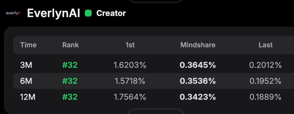这个 @Everlyn_ai $LYN 群友问是什么的时候还以为他在说刘宇宁,看 @xxk_hl 说了一下 Kaito 公募成本 0.25,算加成的话就是 0.17,不知道为什么这次链上提前了这么多开盘,很想知道私人池子为啥会有币。。 核心亮点主要是 Yzi Labs 和 Mysten Labs 的机构投资,融资 15M,加上近期视频 Sora 的火爆,他们自己也有主动创造一个 tag 叫 #CryptoSora ,是懂热点的 0.6~8+ 的价格个人觉得是有点贵了,等一手空投砸盘再看看,这会儿 alpha 的筹码已经开始砸了,币安合约三点半