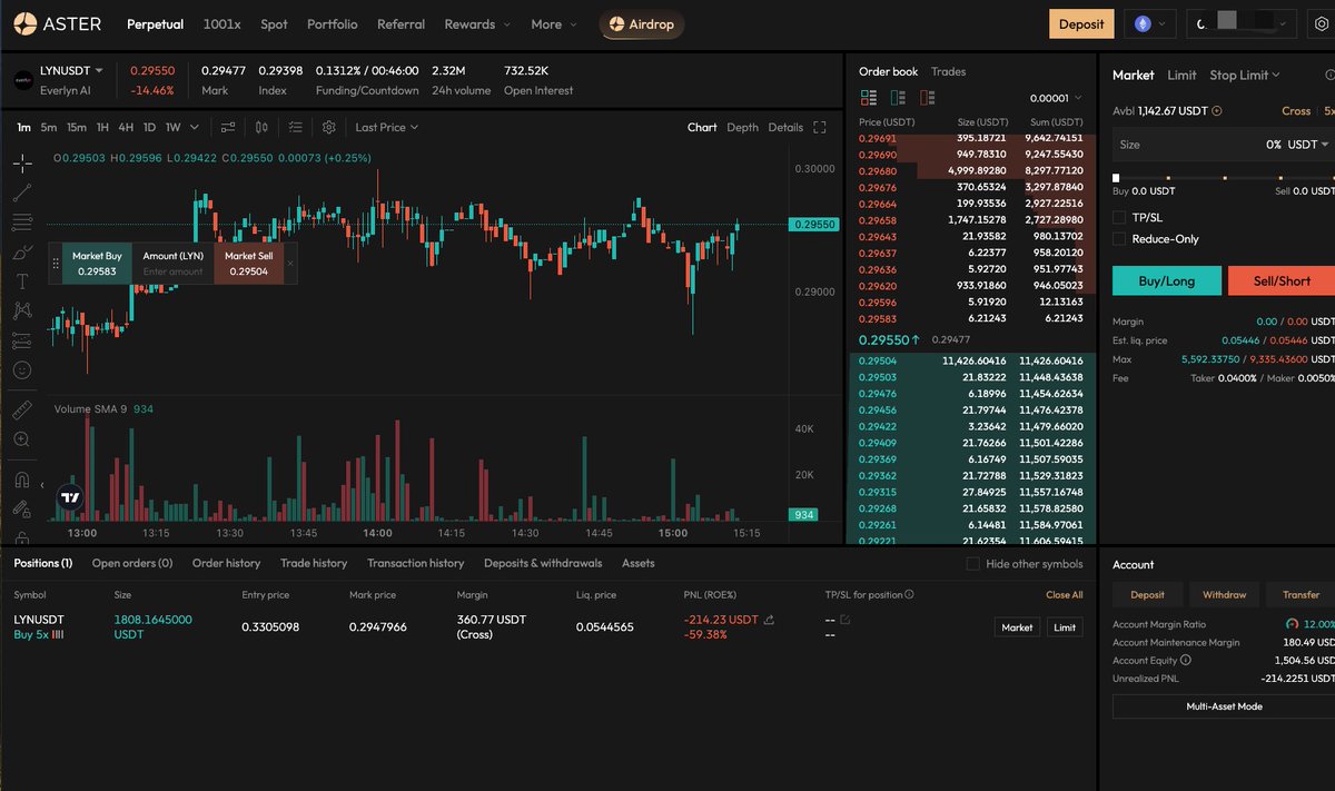 $LYN 我昨晚看到Aster上线后我就多进去了 本来想吃一口就跑 结果给我套住了 Kaito打新的1000刀我也还没卖 ,这个行情还不拉盘在干啥,这个多单我就拿着了! Perps真的容易上头,基本不玩合约的我,最近已经被套得嘎嘎的。 接下来还是要上点科技去刷,大家切记不要上头。 🌲欢迎大家用我的链接刷起来,他们有的什么最高的返佣,我都有! 一、Aster 第三期我是开始刷了 https://t.co/geqB2JjUk6 二、Grvt,最高返佣最高费率都开好了,现在还来是相对早期! @grvt_io 链接🔗https://t.co/rNe2752GQm 邀请码:evaeva 三、StandX绝对早期,现在只能质押 链接🔗https://t.co/2O8FhDGFie 四、SUI生态的Astros,现在是早鸟阶段 链接🔗https://t.co/2lkMTc6AL0 最后提醒,刷归刷别上头!