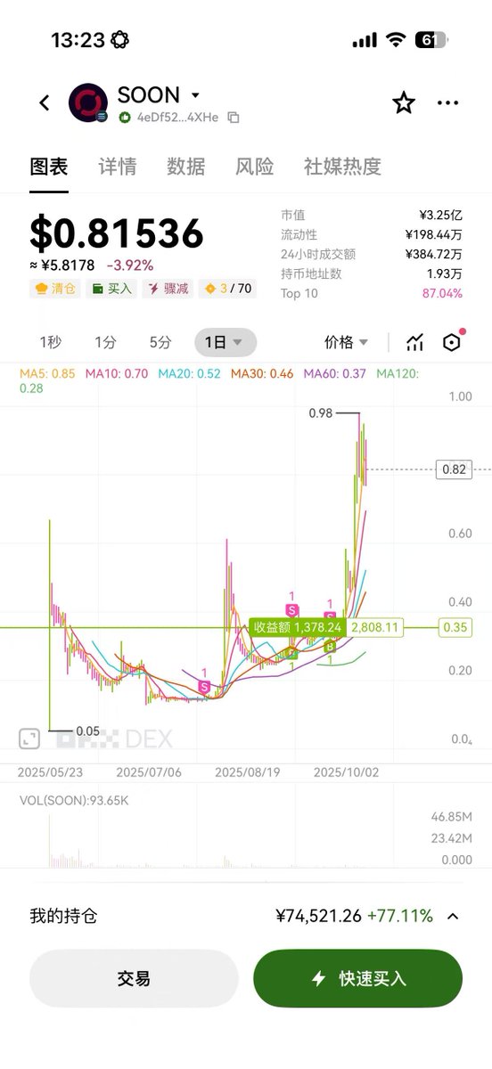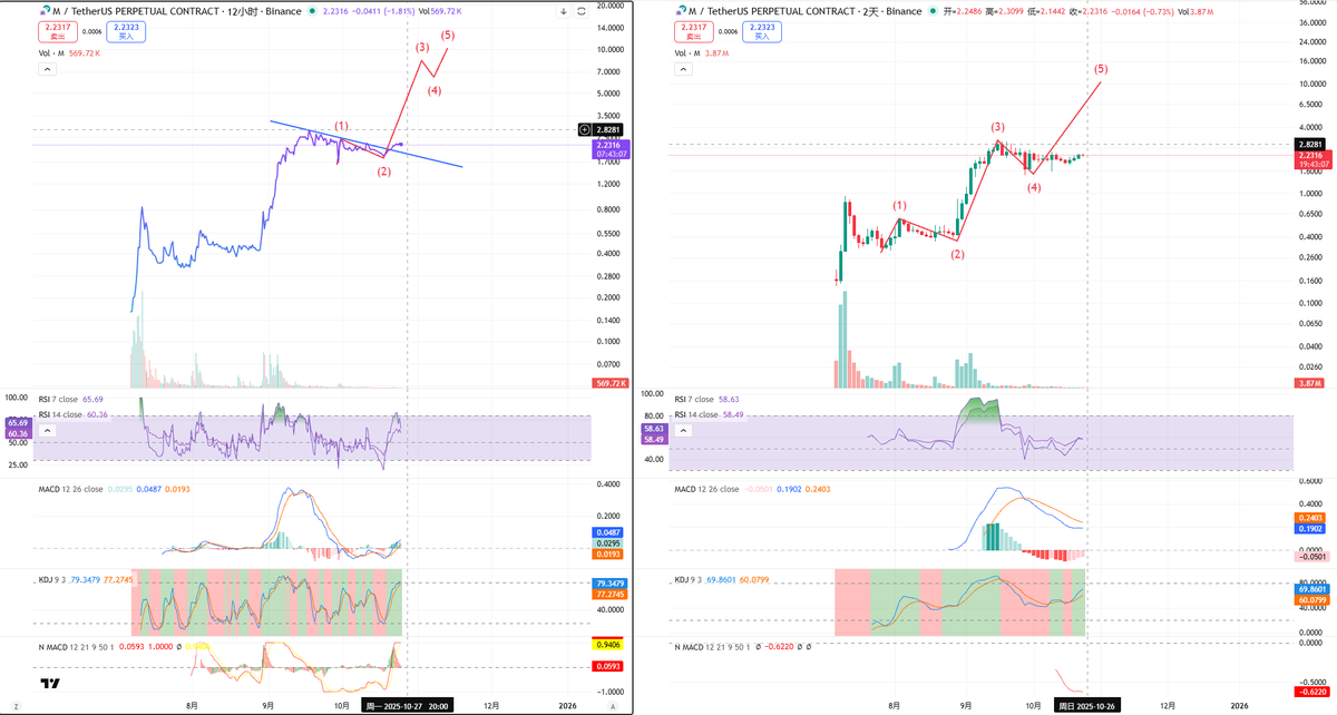 这里还是汲取了我上次 $M 的教训,m我也是根据这个思路来做的,看前面推文就知道,我没有按照现货思维去做卖飞20w刀。