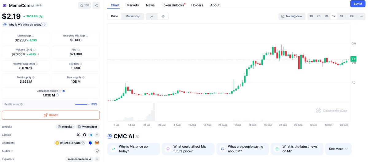 今年最神的项目就是Memecore|MemeX 的 $M 了,