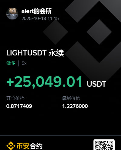 $Light 这个标从10月初就在做,基本进行了波段,几次到了1.01就一下砸下来。现货思维是不去链上买,用合约做,流动性好一点,然后波段。