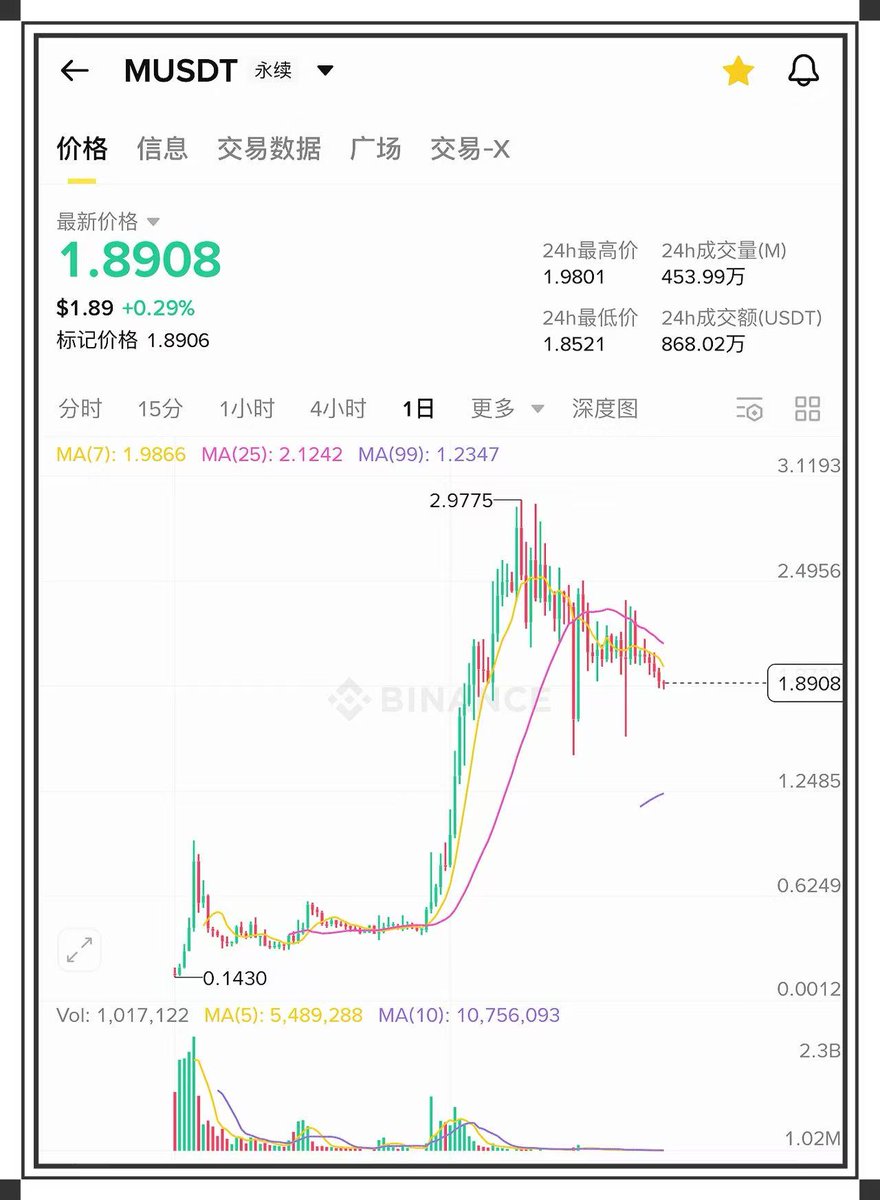 广场上又是一片空军哀嚎,有 $MYX 和 $M 的前车之鉴,尽量少逆势空这种妖币吧。
