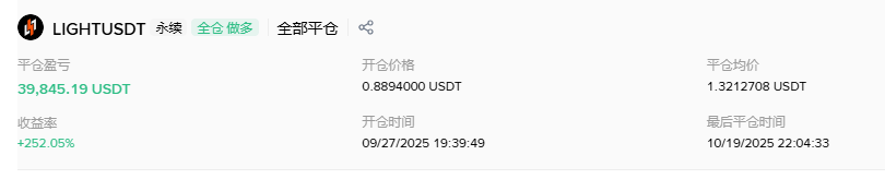 $light 这单,在1.4平仓了,落袋4w刀利润。