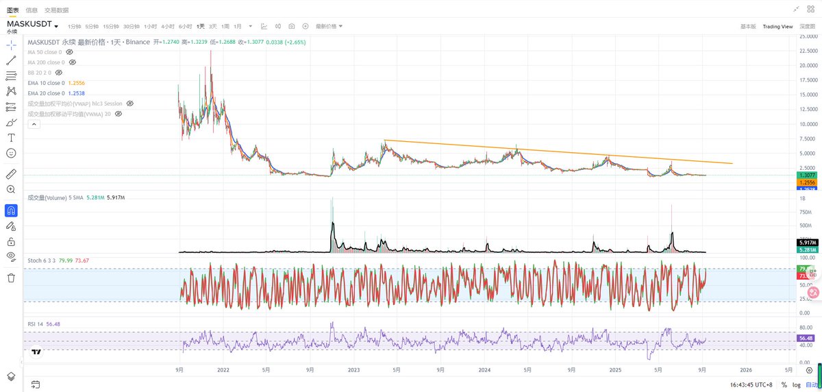$MASK 已经是地板价了,最近主流横盘,山寨乱涨,轻仓买了一点,搏一个翻倍的机会。