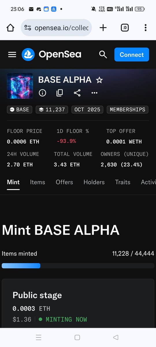 🔥 **Base Alpha NFT 打新机会!低成本撬动高倍回报!** 🔥 🚀 **项目亮点**:Base Alpha NFT 在 Base 链上火热 mint,仅需 MetaMask(小狐狸钱包),每个 NFT 成本 ~$1(0.0006 ETH + Gas),一个钱包最多 mint 200 个!总供应 44,444 个,当前仅 mint 8,479 个,窗口期到 11/2 UTC,抓紧上车! 🎯 **一鱼四吃,空投狂欢**: 1. **Base Alpha 空投**:持有 NFT 攒积分,1 NFT = 1 积分,50/100/200 个分别享 2x/4x/8x boost!社区预测空投回报 1-5x。 2. **OpenSea $SEA**:OpenSea 官方集合,持有或交易可能吃到 $SEA 空投。 3. **Base 链 $BASE**:Mint 即加 Base 生态积分,TVL 已超 $5B,早期玩家吃大份! 4. **MetaMask $MASK**:用小狐狸 mint,记录 on-chain,坐等 MetaMask 空投。 💰 **成本与潜力**:$1-2 每 NFT,200 个成本约 $200-400,潜在收益翻倍甚至更高!X 社区热议“按头打”,官推 @base_alphaQ4 疯狂暗示“Hold to Earn”! 👉 OpenSea 传送门:https://t.co/P4G7hVdSwr 👉 官推:@base_alphaQ4