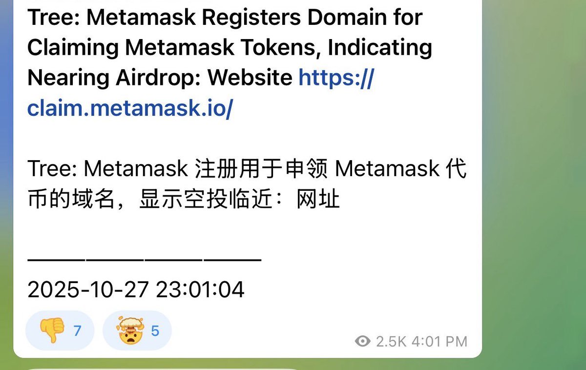 【 $MASK 空投马上开始查询!!!🪂】 Metamask( $MASK )已注册用于领取 $MASK 代币的域名: 链接👉 这意味着——空投已经非常接近了! 🚀