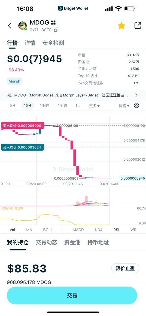 $BDOG 积累了一些用户基础,也套住了一部分人 鉴于持仓的人,说我早上唱空,那我也就把早上的推文删掉了,我不想做坏人 当然,我的推特说啥还是我的自由,投资确实有很多变数,大家推特发言也理性点,喷来喷去没意思,实在忍不住线下约人打一架就行了 说实话 $BDOG 我还是看好的: 1、 @muffundotfun 开 $BGB 池子开启之后第一个狗IP,也是没有阴谋参与之后飞到200k的代币; 2、 $BDOG 可以理解成 $BGB DOG,因为Morph链以后会用 $BGB 做gas,有链必有狗,这个IP是有有意义的,个人认为不比 $MDOG 差,可以并列; 3、Morph ceo @Goltra 多次回应; 4、市值很低,5万市值,对标 $MDOG 有很大空间 $BDOG 合约: 0x87c7dd4dc6172a399ae898b1a067fbd0a9991111 k线: https://t.co/AOW94008C9 在此也声明一下:我不会去cto这个代币,因为能力和精力有限,也怕辜负大家的希望。这个代币跟我无关,除了一个持有者的角色以外。当然如果cto需要我有一些力所能及的支持也不是不行。 最后,还是希望官方多扶持这样的IP @eth_cedric @xiejiayinBitget @Bitget_zh @BitgetWallet @Bitget_zh @GracyBitget @muffundotfun @JamieElky @Jamin599