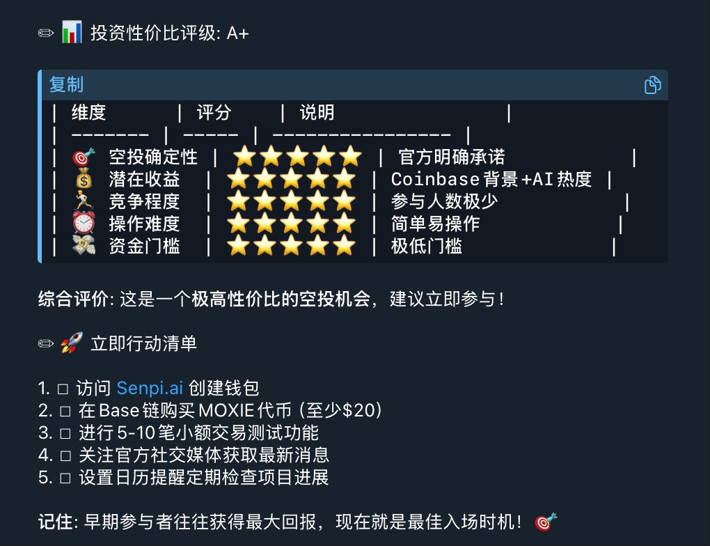 ⦁ 官方确认: 所有MOXIE持有者在Senpi代币发布时将获得空投