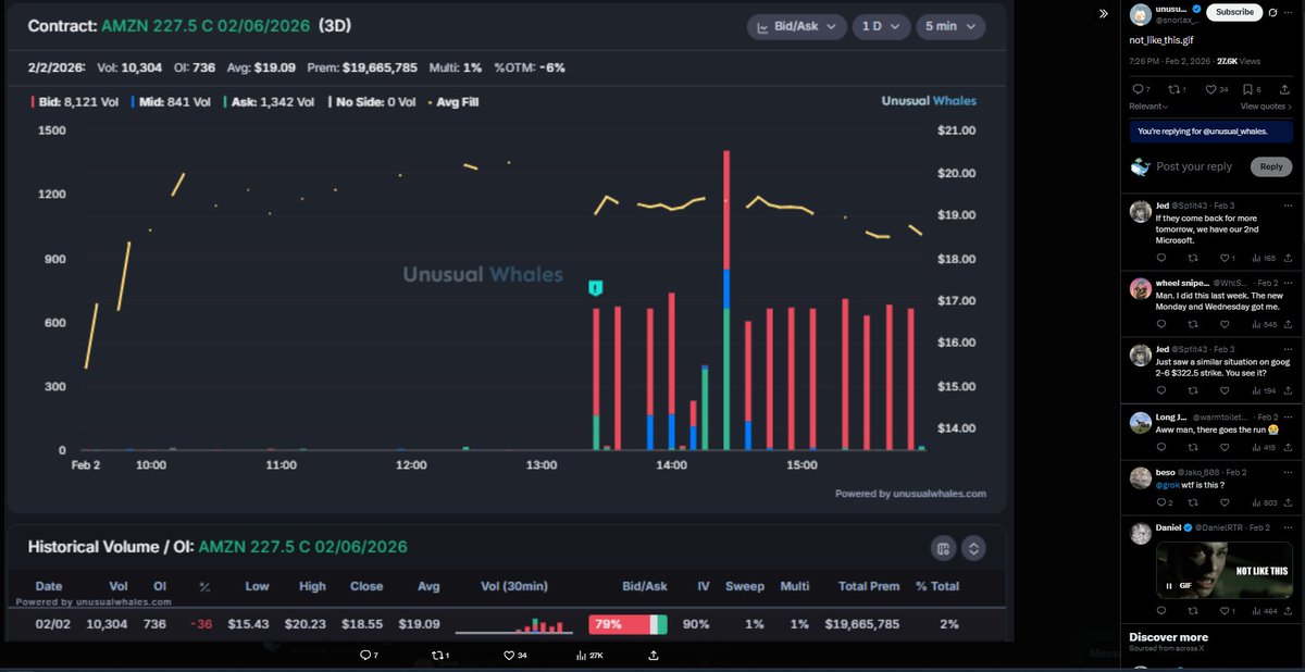 前几天在巡航流程中,看到这些 $MSFT 电话连续 2 天整天都受到重击。将其视为可能的垃圾🤣