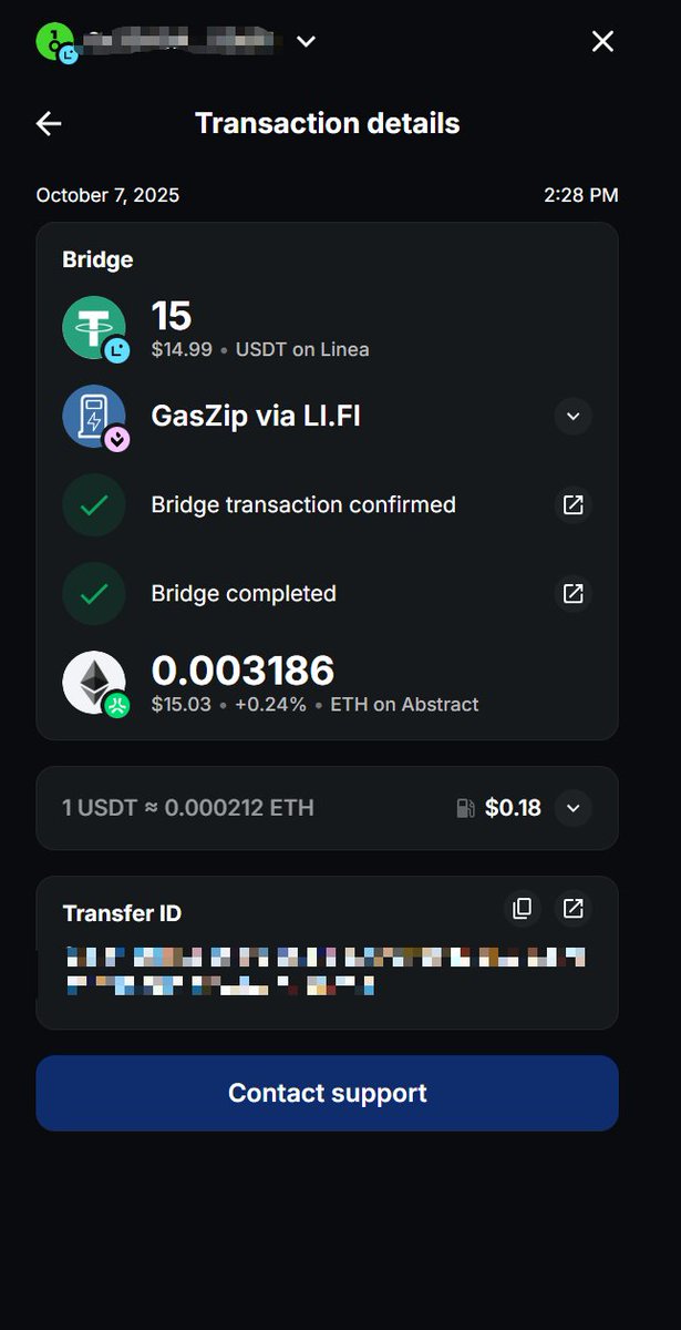 🔹跨链充值USDC时,万一卡在最后一步到了ETH,但还没换成USDC,手动进去再把ETH换成USDC即可。