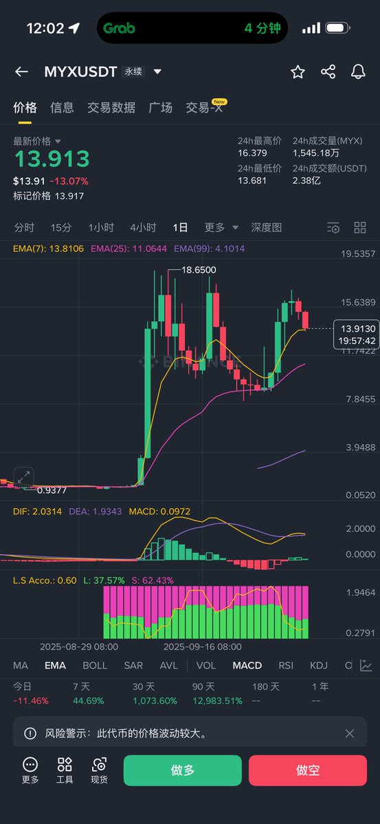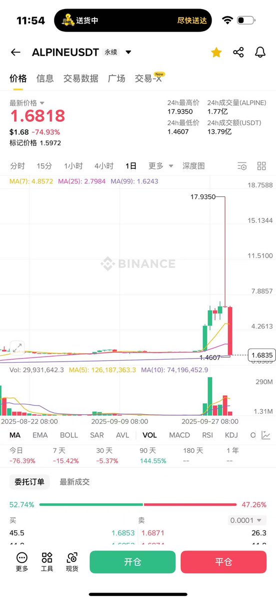 现在市场上有一种币我建议是别碰也别关注,就是恶庄控盘的合约币,代表作就是今天天地针的 $Alpine 和现在还老而弥坚的 $Myx 。 这种的特点就是代币与项目基本面已经毫无关系了,甚至跟团队也没关系。筹码全在MM(庄)手里,庄家其实是看着牌跟你打对家,上车多单的人多了,他们就往上扎针爆赌狗,空的人多了,他们就往下扎。 你无法用正常的逻辑去衡量和判断,比如哪有一个上了币安的币能一天涨10多倍?而且还能瞬间跌90%? 现在就表演给你看看。 每次会不会有极少数人跟着赚到钱?肯定有,也会晒出来,但大头肯定是庄拿走了,而且稳赚不赔。 只要有人玩,他们就能一直来回收割下去,只要你敢抗单,他们就能用几小时10倍的波动率收割你兜里的所有资金。 这种台子,只要不离开牌桌,大概率最后你的钱💰都会变成他们的。 所以最好的办法就是,远离