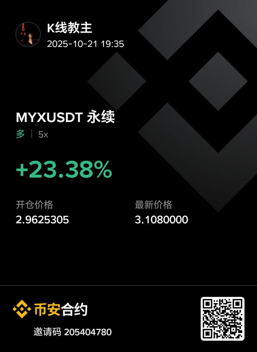 上次在 $MYX 最底部按头社区冲了 从此以后爱上了 $M 辈的代币了 目前看到有大周期冲 5 浪的机会 加上 @MemeMax_Fi 有机会拿到大收益 冲了