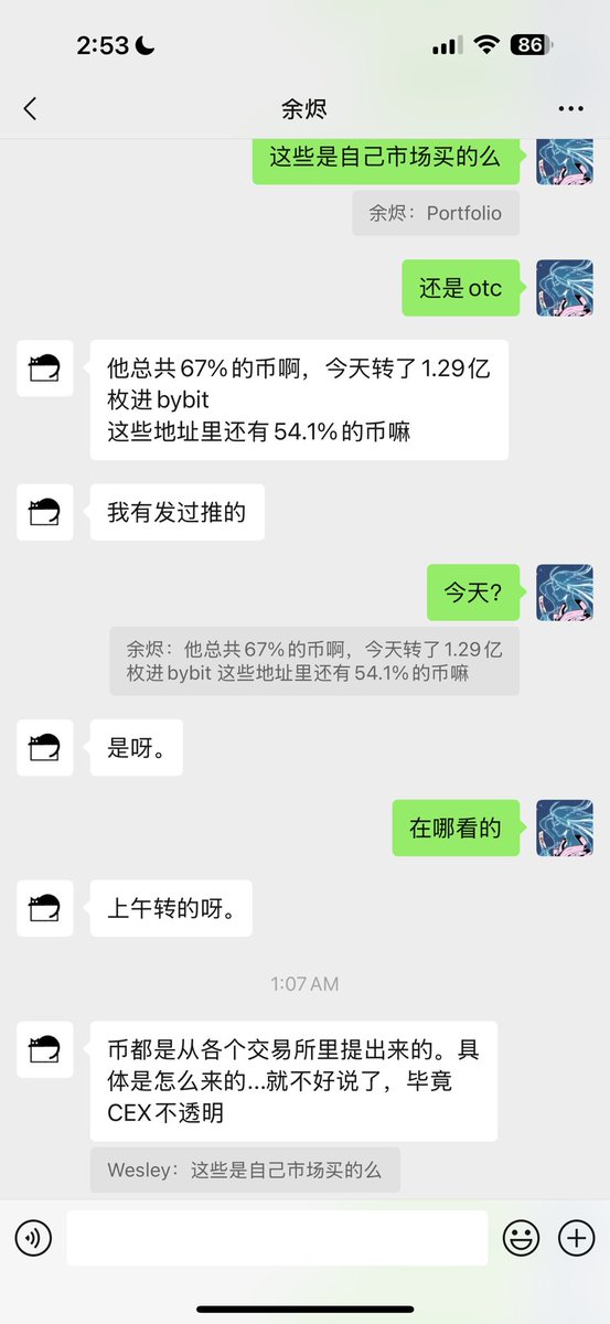易理华买了 67% 的筹码 最高点价值 1.2亿美金 今天砸盘的时候值 5150w 现在不卖的话只值 4000w了。因为我猜测了得是OTC购买的,看上了这个币在bybit binance都有合约,bybit还有现货,如今@Bybit_Official 要下架的话,那就没有操盘坐庄的意义了,估计 @binance 也会下架。毕竟谁希望自己的韭菜被别人割