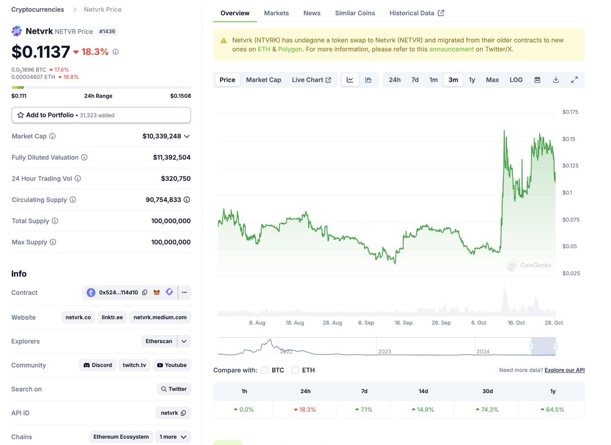 4. $NETVR (@Netvrk_Official) - $0.0035 (+30%)