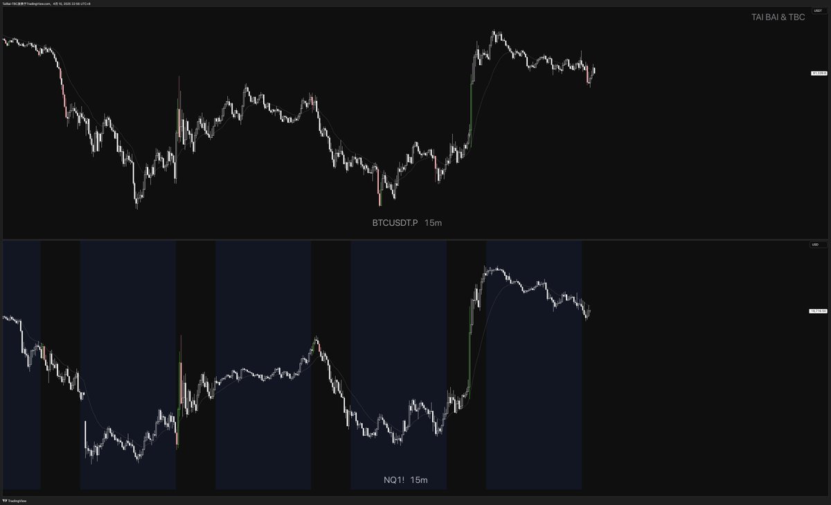 上面是 $BTC 下面是 $NQ 纳斯达克100指数期货 别说你是抄币的了,本质上就是在炒美股😂