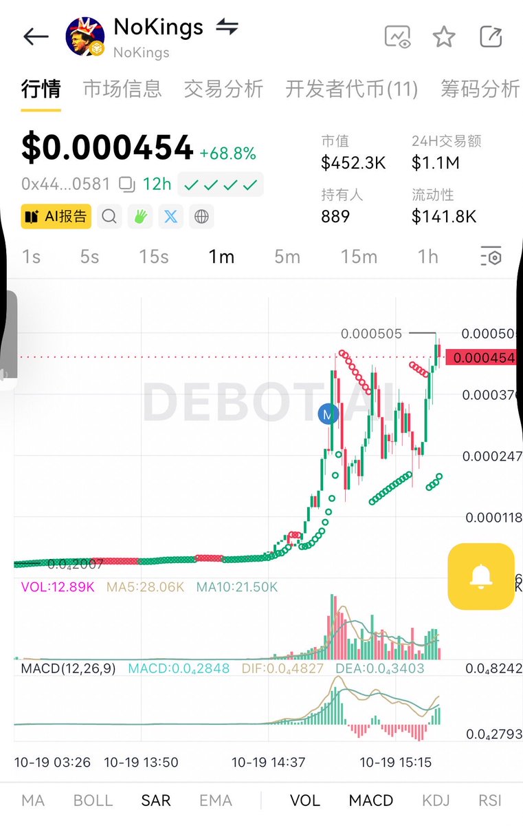 🚀🚀NoKings 24小时内 52.68%, 450k,现价 $0.0₃454,冲狗直达: