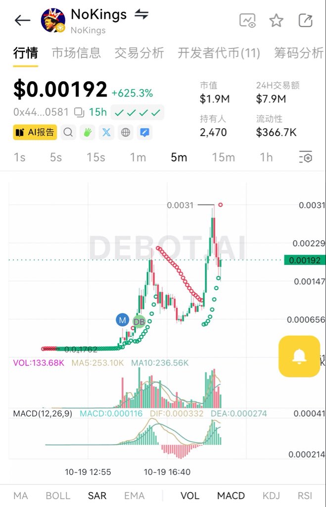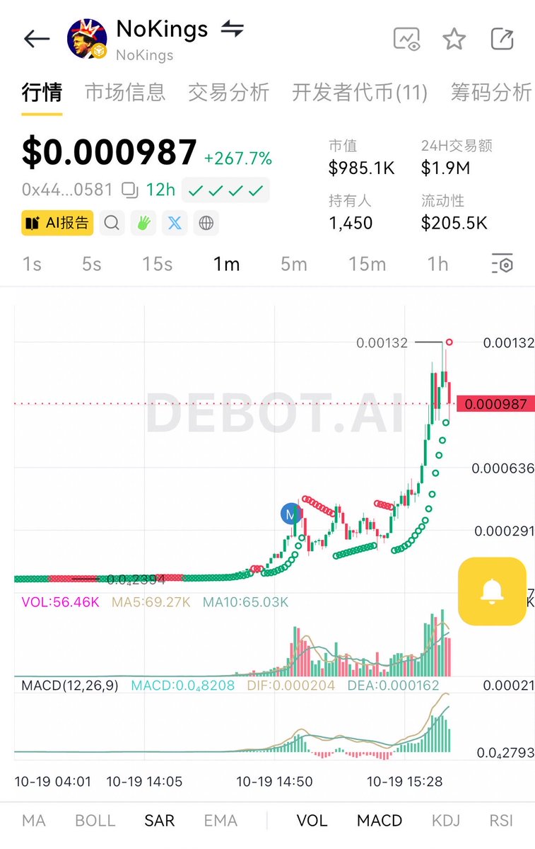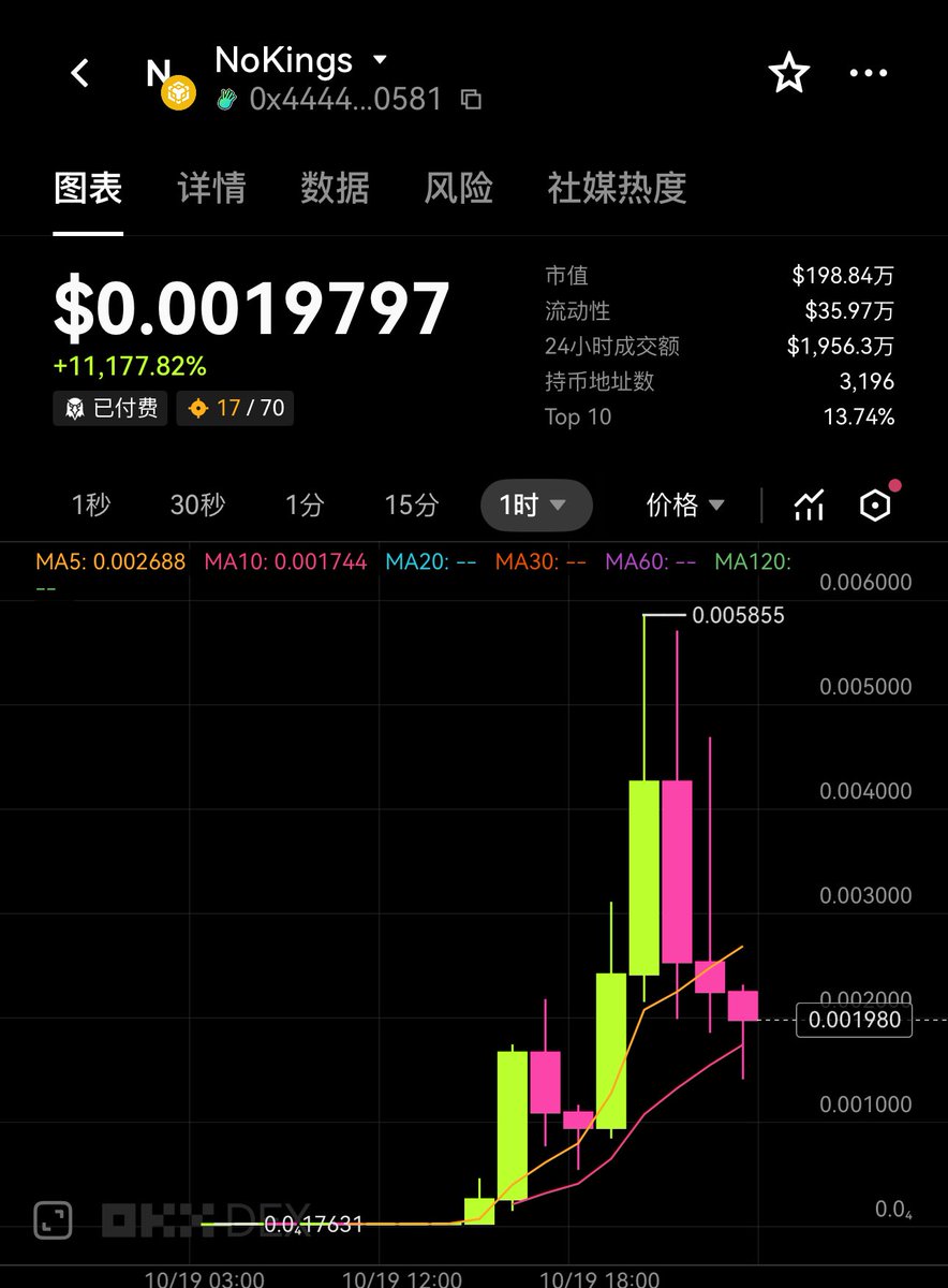 $nokings 目前回落到 1m 上下,感觉这个话题还在web2传播,马斯克特朗普或其他名人对联邦政府停摆或者游行进行回复,非常容易助推 nokings 起飞!