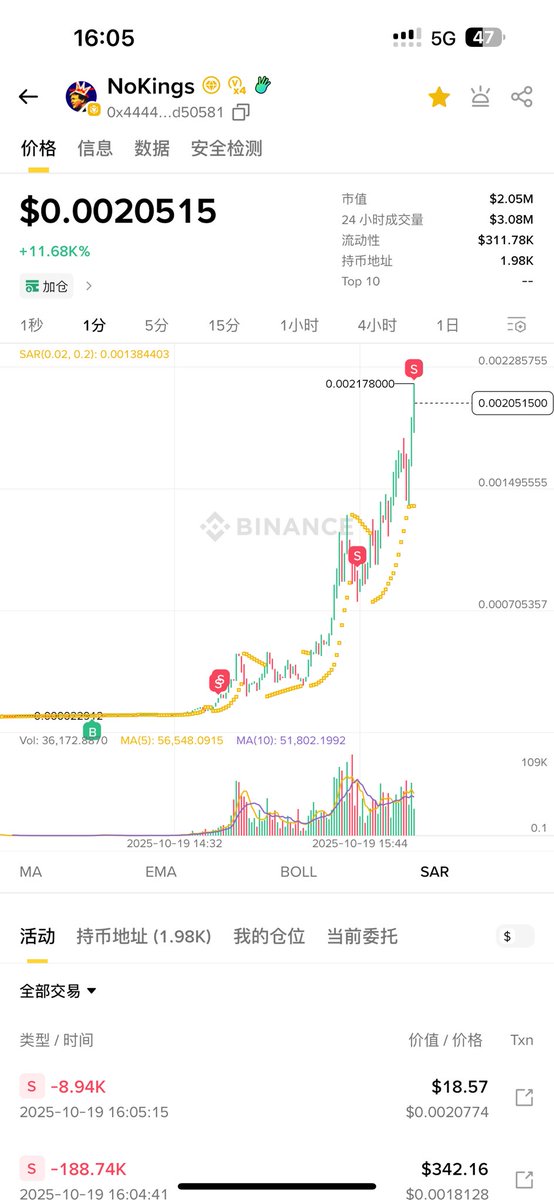 Bsc太依赖两口子了,刚特朗普相关的两个币 $无王 和 $nokings 低位我都买到了