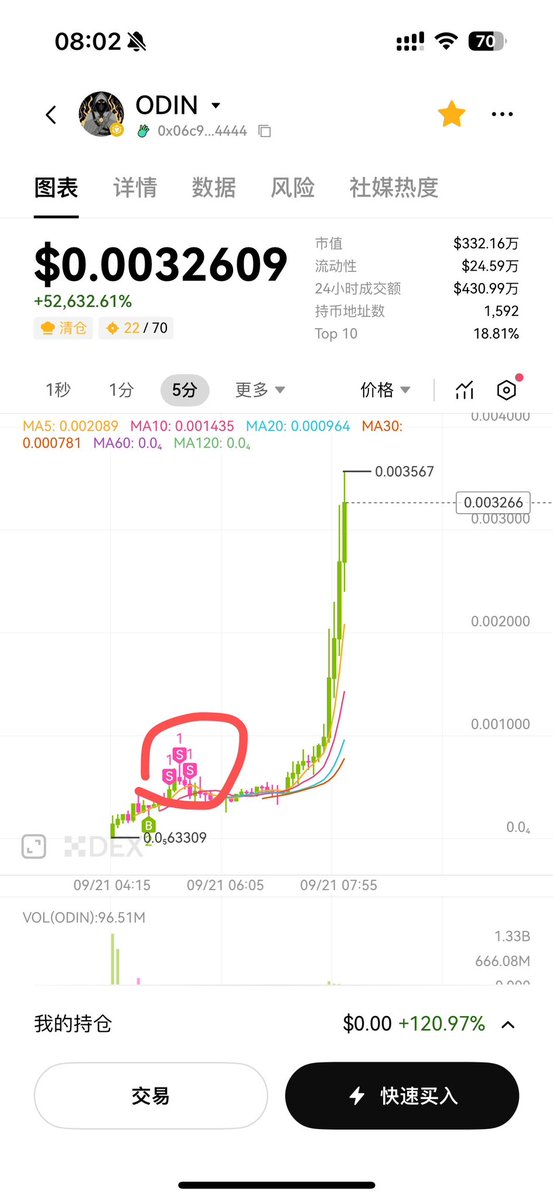 BNB 链情绪有点太离谱了,五点钟买了 @Aster_DEX 的第二个吉祥物 $ODIN ,200k买700k卖完,早上醒来400k美滋滋,结果刚刚直接爆拉到3m多……