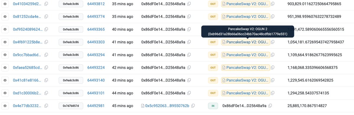 刚刚出的一波$OGUN的高潮,被发行4的黑客疯狂出货,他分了三个地址在那疯狂卖