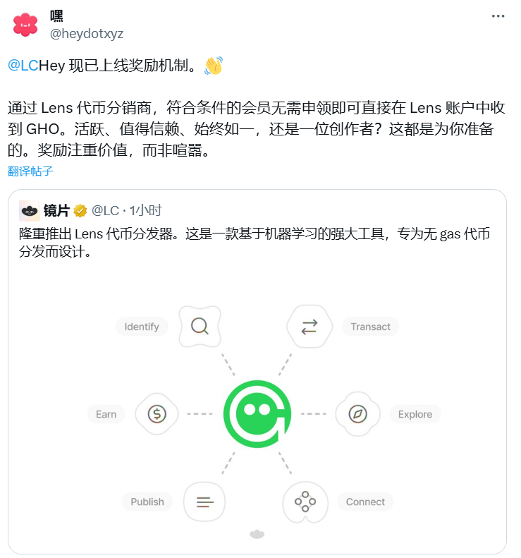 Lens @LC 已上线奖励机制,通过 Lens 代币分销商,符合条件的会员无需申领即可直接在 Lens 账户中收到 GHO