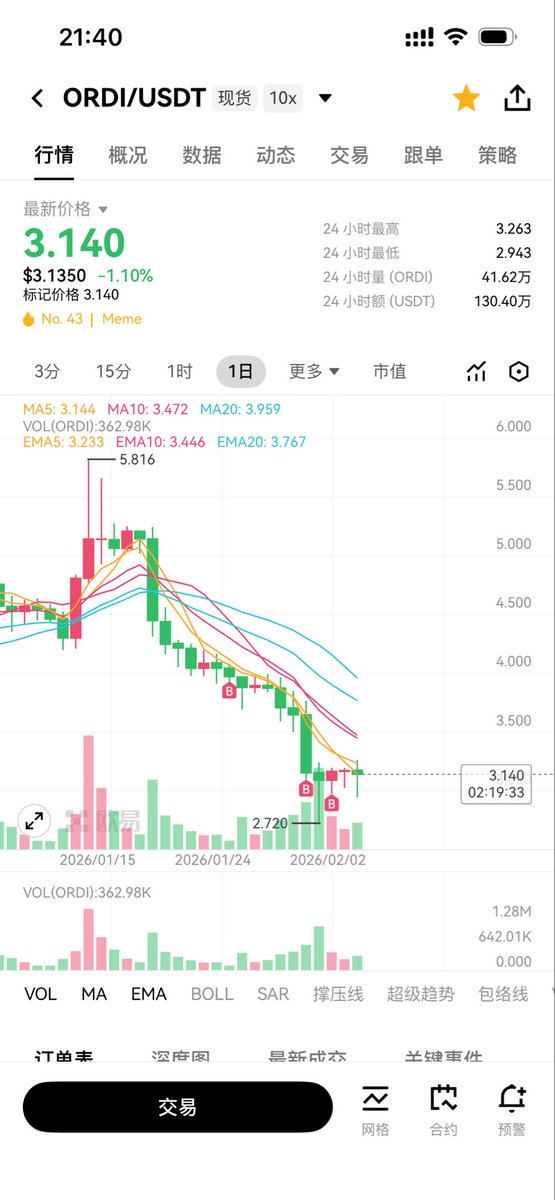 还能复刻上次 $ORDI 3天逼近翻倍的节奏么?
