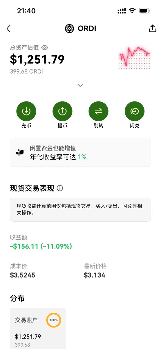 买入5w6 的 $Ordi ,目前浮亏5000块,目标躺赚十倍。