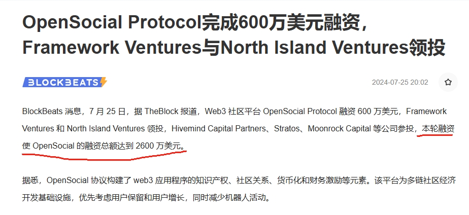 鉴于EVG累计投资并参与Animoca Brands、Berachain、Immutable、Flow、Sandbox、Yuga Labs、Celestia、Eclipse等100多个项目的开发,OpenSocial值得重视。
