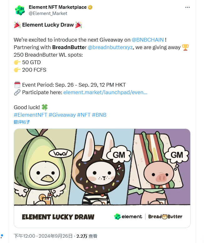 10月中旬会发布 BreadnBuddies 系列NFT、供应4000