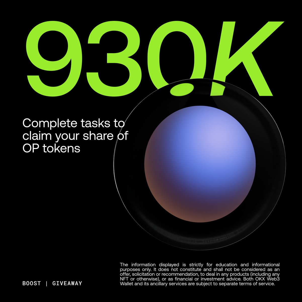 Okx @okxchinese 上线了新的giveaway活动,空投奖励93万 $op 代币,大概价值40万美金