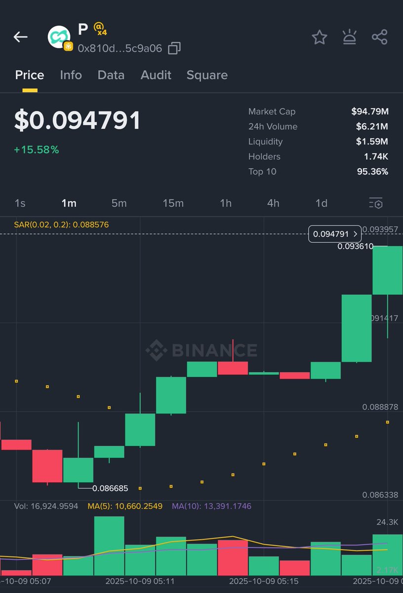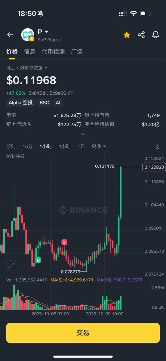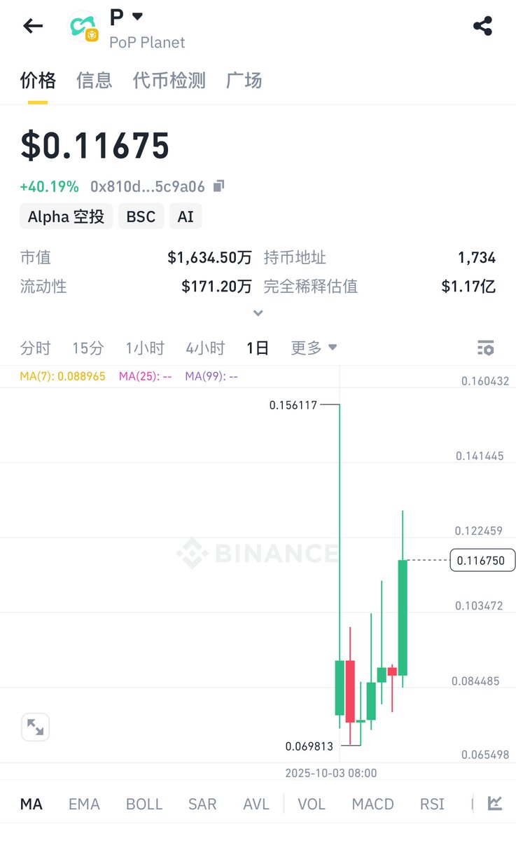 🍚最近bsc上的热度比较好,昨天留意到前几天上币安alpha的 @Hi_PoPPOfficial 的token $P ,今天拉了50%了。