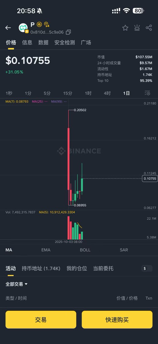 前几日上线币安 Alpha ,价格还算稳,项目爸爸后面会有一些大动作,大家可以多关注下。 $P
