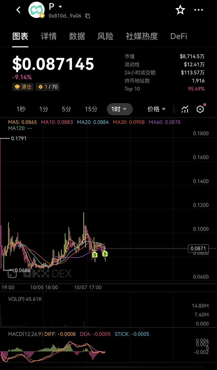 我找了一下其中已经上线币安alpha,但市值不高并且也没有大量砸盘的单字母项目,准备埋伏一下,就找到了这个@Hi_PoPPOfficial 的 $P